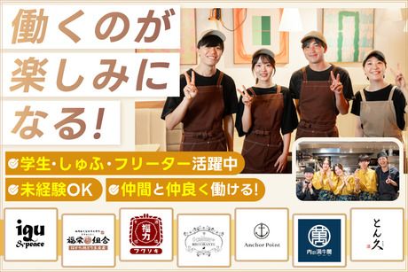 職場環境 【従業員構成】 \幅広い年代が多数活躍中♪/ ☆WワークOK!! ☆昼のみの方OK!! ☆夜のみの方OK!! ブランク明けの方や アルバイト初めての方など 様々な年代の人がいるから、 「同年代と働きたい」という方も スグに仲間と馴染めます♪ \正社員登用実績も多数!/ アルバイトからそのまま 正社員になったスタッフも 数多く活躍しています♪ アルバイトを卒業する人には 卒業式を行う社風。 「人が好きだからずっと ここで働きたい!」 そう決意してくれた社員も。 \時短勤務制度もあり/ ライフスタイルに合わせて 働く時間やペースの相談もOK! 新しいチャレンジを応援し、 制度で支えています◎ 【職場の雰囲気】 にぎやかな職場 立ち仕事 アットホーム お客様との対話は少ない 初心者活躍中 自分の都合に合わせやすい 知識、経験不要