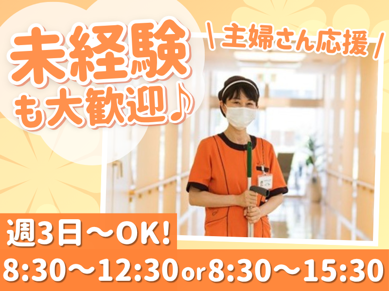 仕事内容 下記の時間帯で週3日~勤務可能! ①8:30~12:30 ②8:30~15:30 ※上記①②のいずれかの選択も可能! ━━━━━━━━━━━━━ ●主婦パートさん活躍中!● お子さまの登校後から お迎えまでの時間で働かれる方や、 週3・4日でお仕事復帰される方も◎ ――――――― お仕事内容 ――――――― 診察室や廊下など病院内の お掃除をお任せします。 使用する道具は、 モップやタオルなど おなじみの道具です◎ まずは道具の使い方や基本的なお掃除術を 覚えることから一緒に始めていきましょう! ――――――――― 未経験大歓迎! ――――――――― 約1ヶ月で基本的なお仕事は 覚えることができますよ! しっかりとサポートするので 安心してご応募下さいね! ~・~・~・~・~・~・~・~・~・~・~・~・~ お電話でのお問い合わせも大歓迎! TEL:092-283-1155(採用担当まで) ~・~・~・~・~・~・~・~・~・~・~・~・~ ―――――――――――――――――――― 【勤務地】 直方中村病院(請負先) 住所:福岡県直方市頓野993-1 アクセス:JR日「直方駅」から車で10分 ――――――――――――――――――――