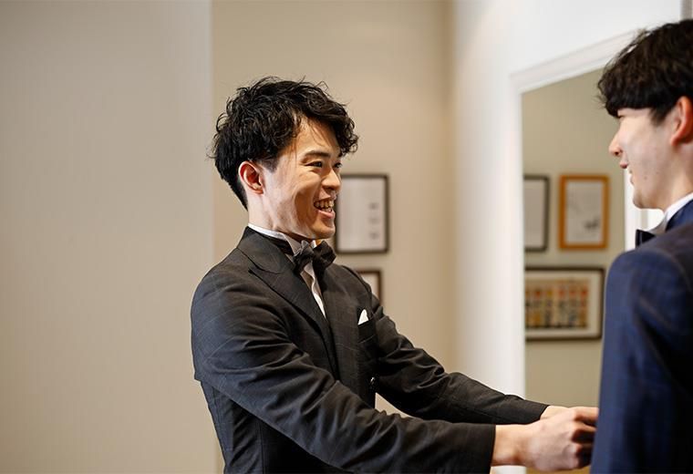 仕事内容 ◆◆───────────── 服を売るだけの毎日に、 物足りなさを感じていませんか。 ─────────────◆◆ 2000年、横浜に誕生したタキシード専門店 “SYUSON New York” それが、私たちの全ての始まりでした。 NYの洗練されたスタイルを日本へ。 私たちが受け継いできたのは、 単なるトレンドではなく、男性美を 最大化させるための「正装の哲学」です 。 ご新郎様が、最高に輝く主役であるために。 生地、仕立て、ミリ単位のサイジング。 2.5時間の対話を通じて、完成させる。 その熱意が、私たちのブランドの背骨です。 スーツの美学を極めた先に、 あなたがデザインしたオリジナルの一着を 世に送り出すチャンスがあります。 ─────────── 当店ならではの魅力 ─────────── ◆理想を叶えるトータルスタイリング タキシード選びからアクセサリーまで、一貫した世界観でコーディネートできるのが私たちの強みです。 ◆完全個室で、心に残るひとときを フィッティングルームは、プライベートに配慮した完全個室。ご新郎様やご家族様と周りを気にせず、ゆったりと衣装選びを楽しんでいただける特別な空間と時間をご提供します。 ◆あなたのアイデアが新作スーツに! チームで挑むコンペを定期的に開催しており、入社後すぐに商品開発に関われるチャンスも!優勝チームのデザインは実際に商品化されます。 将来的には、NYやイタリアでのインポートスーツの買い付け、雑誌撮影などに携わる道も開かれています。 ─────────── 具体的な仕事の流れ ─────────── 1)ご来店・ヒアリング 最初のご来店は挙式の3ヶ月~1年前。この時、お二人の想いやご希望をじっくり伺います。 2)ご試着・スタイリング提案 タキシードや和装のご試着をサポートし、ヘアスタイルやお小物までトータルでご提案。1組のお客様にじっくりと時間をかけ、丁寧に向き合います。 【一人当たりの接客数】 平日:約2組 休日:約3~4組 ※1組当たり:約2~2.5時間 3)準備・メンテナンス 挙式当日に向けて、衣装やアクセサリーの最終チェックやお手入れを行うのも大切な業務です。
