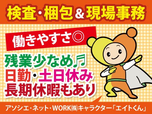 仕事内容 未経験からチャレンジできるチャンス! 半導体関連の大手工場内で 入出荷業務及びピッキング、部品の棚卸業務など 間接資材の管理業務を行います。 「現場事務スタッフ」としてパソコンを使いながら 業務を進めていきます。 事務経験ゼロの方や、ブランクのある方も大丈夫! 出荷手配や伝票入力などの簡単な事務作業と、 軽作業(検査・梱包)が半々の業務です。 安定した業界で、長く働きたい方にぴったりです。 【仕事内容(工場内の事務+軽作業)】 以下の業務を、マニュアルに沿って進めていただきます。 ・出荷手配(部品の出荷準備・伝票作成・内容チェックなど) ・伝票処理(荷受け・出荷に伴う伝票の確認や入力) ・データ入力(Excelを使った簡単な入力・チェック業務) ・部品の検査・梱包(目視チェック・箱詰めなどの軽作業) 〇事務と軽作業は5:5程度のバランスです。 〇座り作業が中心で、体力的な負担は少なめ。 〇未経験の方でも、丁寧に教えてもらえる環境です。 \こんな方におすすめです!/ 〇コツコツとした作業が得意な方 〇オフィスワークや事務のお仕事に興味がある方 〇デスクワーク中心で働きたい方 〇安定した環境で長く働きたい方 〇土日休み・日勤で働きたい方 【ここがポイント!】 〇未経験から事務+軽作業にチャレンジOK 〇日勤のみ/土日休みで働きやすい 〇残業少なめ!現在月平均2時間程度 〇半導体関連の安定企業で長期勤務が目指せる 〇正社員登用制度あり!6ヶ月後正社員も夢じゃない! 【応募方法】 「ちょっと気になるかも…」と思った方も大歓迎! 応募ボタンからお気軽にご連絡ください。 ご質問だけでもOKです!まずは話を聞いてみませんか?