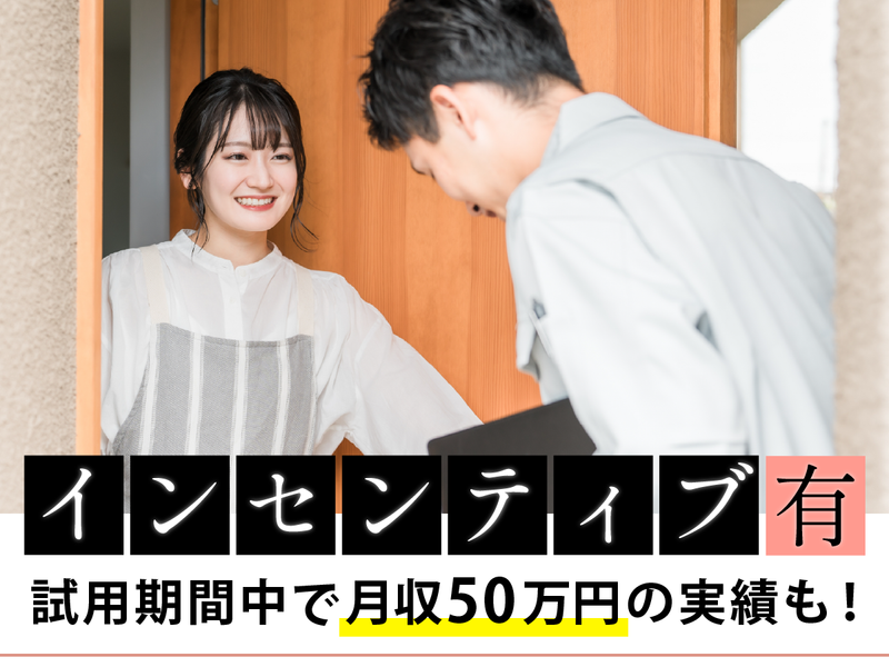 仕事内容 お客さんを家に呼ぶとき、 できるだけ部屋を片付けると思います。 だけど、家の外側は? 雨の水染み、禿げた塗装。 基礎のひび割れ、雨樋の泥――。 そんな”隠したいけど隠せない部分”に 一歩踏み込むのが私たちのお仕事です。 「あそこひび割れしてますよ」 なんてお客さんに言われたら嫌だけど、 「このままだと家全体が歪みますよ」 とプロに言われたらちょっと考えるかも…。 図々しいかもしれない。 正直、嫌な顔をされることもある。 でもこれから先も長く住むならば、 それは家にとって必要な『健康診断』です。 飛び込み営業は、 アウェーのリングに乗り込むこと。 だからこそ、お給料でしっかり還元します。 あなた自身を武器に勝負できる環境で、 新しいゴングを鳴らしてみませんか? -・-・-・-・-・-・-・-・-・-・-・-・-・-・-・-・-・-・-・-・- ⏩外壁塗装の飛び込み営業  ̄ ̄ ̄ ̄ ̄ ̄ ̄ ̄ ̄ ̄ ̄ ̄ ̄ お客様は【戸建て】にお住まいの方のみ! 見つけた”ほころび”には、あなた自身が、 最適な工事をご提案するスタイルのため、 「お問い合わせを待ってるだけ」 「アポを取ってもパスアップするだけ」 …が合わない方にこそオススメです◎ ■塗装工事のご提案 ■提案資料や見積書の作成 ■施工スケジュールの管理 など 経験やスキルはなくてOK! 諦めずポジティブに取り組める方なら、 きっと確実に結果を出せるはず。 実際に、試用期間中にインセンティブで 月収50万円を達成した方もいるんですよ! -・-・-・-・-・-・-・-・-・-・-・-・-・-・-・-・-・-・-・-・- ✧ 求人のポイント ━v━━━━━━╯ ✅【研修】動画+AIで営業スキルを可視化 ✅【実践】先輩同行や模擬商談あり! ✅【休日】完全週休2日(シフト制) 雨の日はお休みもOK! 外回りがメインのお仕事なので、 「無理をして空振るくらいなら…」と コンディションを整えるために休む先輩も。 その分、晴れた日にはがむしゃらに! オンオフの切替を大切にしています✨ ※早い方は1年以内に幹部に昇格可能! 昇格後は飛び込みが減り、 管理業務などがメインとなります。