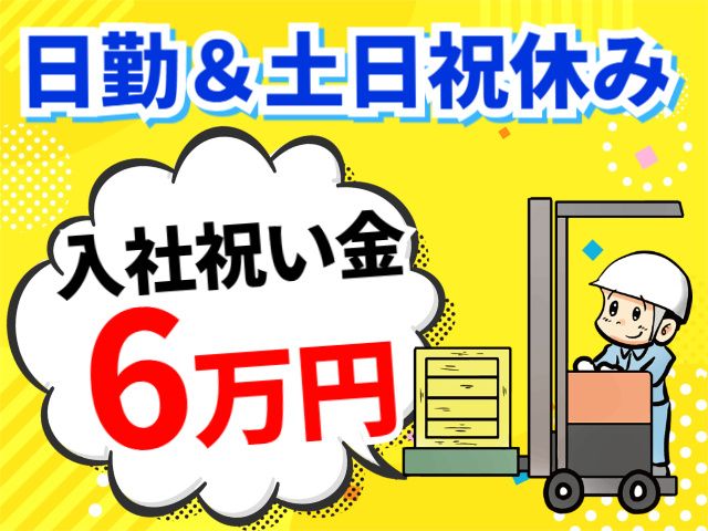 日勤専属の倉庫内作業/土日祝休み/入社祝い金あり/昇給・賞与あり/高時給/男性活躍中