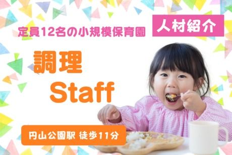 仕事内容 園児の給食調理と月に2回程度の買い物をお願いします。 (買い物の量は少量です) ★さら~れ保育園 円山園 地下鉄東西線「円山公園駅」より徒歩10分 家庭的な雰囲気を大切にしている定員12名の小規模保育園です。 子ども・働くスタッフの過ごしやす環境を大切にしています。 保育ママとしてスタートした円山園 マンションの一室を利用しており、家庭で過ごすような落ち着いた環境の中で、ゆったりとした保育を行っています。 各部屋や調理室、トイレも家庭の雰囲気を大切にしており、子どもたちは安心して過ごせる空間となっています。