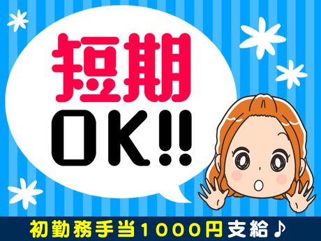 固定時間制 勤務時間 << スマホでシフト完結! >> □日数や曜日の希望は気軽にご相談を♪ □平日のみ(土日祝休み)など自由! □短期~長期まで大歓迎 □生活スタイルを崩さずに勤務が可能◎ □前日までにスマホでシフト提出OK <勤務時間> 8:30~17:15 *残業なし! *時間内でしっかり働ける♪ (●・ω・●)ノプライベート重視でOK! *シフト制 *週5日~OK *ド短期OK *即日勤務OK