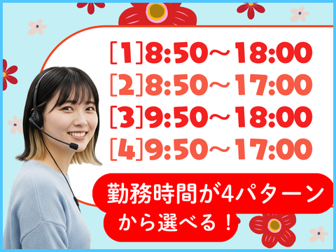 シフト制 勤務時間詳細 2026年3月末までの期間限定! 以下シフトから自由に選択OK! ⏰8:50~18:00(実働8時間) ⏰8:50~17:00(実働7時間) ⏰9:50~18:00(実働7時間) ⏰9:50~17:00(実働6時間15分) └月~金/週3日~OK! 月曜・金曜勤務必須 シフト制 ・週20時間以上の勤務 ・組み合わせ、固定OK ・残業少なめ(月5時間程度) ・17時まで ・18時まで ・平日のみ