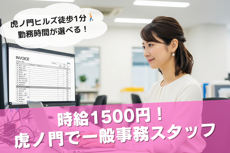 仕事の内容 \嬉しいシフト制・長期安定✨/虎ノ門駅チカ!自由なスタイルで働く【オフィスワーク事務】募集! 「オフィスワークに挑戦したい」「プライベートも充実させたい」そんなあなたを歓迎します! 虎ノ門ヒルズ駅徒歩1分の駅チカオフィスで、データ入力や請求書作成などをお任せする【一般事務】を募集。 万全の研修体制で安心して働くことができます。 Excelの文字入力や簡単な計算ができればOK! 服装・髪型・髪色・ピアス自由なので、あなたらしくオシャレも楽しめます。 残業なし、週休2日制(土日)で、月1回シフト提出なので、プライベートの予定も立てやすいです。 週払い制度もあり、急な出費にも対応可能。虎ノ門の便利なオフィスで、長期安定して働きませんか? 【お仕事内容】 データ入力や請求書作成など、オフィスワークが中心です。 ・データ入力(各種情報の入力、更新) ・データ集計(Excelでの簡易的な集計) ・請求書作成(テンプレートへの入力) ・請求書の封入作業 ・その他庶務全般(電話応対など) 【✨ココが魅力!✨】 ✅ 万全の研修体制で安心! ✅ 高時給1,500円! 週払いOKでしっかり稼げる。 ✅ 残業なし! 週休2日制(土日)でプライベート充実。 ✅ 服装・髪型・髪色・ピアス自由! あなたらしく働ける。 ✅ 駅チカ! 虎ノ門ヒルズ駅徒歩1分で通勤ラクラク。 少しでも気になった方は、ぜひお気軽にご応募ください✨ 「話だけでも聞いてみたい」そんな気持ちでも大歓迎です!