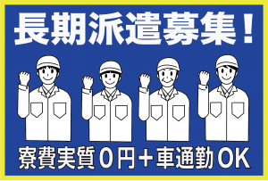 インフォメーション 製品のセット・検査!1ルーム寮準備!しかもずっと寮費無料! 寮から職場まで徒歩15分です◎ 寮は鶴岡市の中心部に構え生活に便利♪ ライン作業ではありません◎ 自分のペースで集中して仕事ができます! 20~40代までの男女活躍中! 寮費無料で生活家電も付いている! 駅近くに寮を設定、工場まで徒歩15分程度です◎ 寮近辺はコンビニやスーパーがあり生活に便利! 徒歩15分圏内で必要なものが揃います! ご自宅(又は寮)から車通勤の方は 工場内無料駐車場あり! 1人作業が多い職場です。 自分のペースで作業できるのでストレスも感じにくい◎ 未経験者でもしっかりとした研修があり 安心して働けますよ! GW・夏季休暇・年末年始の長期休暇あり◎ しっかり稼いでゆっくり休めます! 食事代半額補助あり! 実質1000~2000円台/月でお昼ごはんが食べられます! 交通費は全額支給◎ 酒田市から通勤している方も多数います! アピールポイント ・ワンルーム(寮費無料) ※敷金・保証金等の初期費用は一切必要ありません 自分力バロメータ 忍耐力 積極性