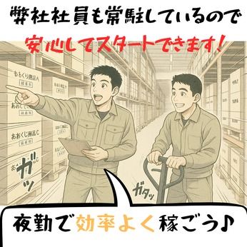 仕事内容 ■未経験歓迎!夜だからこそじっくり覚えられる 当社請負先の夜間物流倉庫にて 荷物の仕分け作業やスタッフのサポート業務をお願いします! 日本を動かす【物流】の現場で働きませんか? 経験は必要ありません! 未経験からのスタートのスタッフも多数在籍 仲間がたくさんいるので丁寧にレクチャーします 夜勤で効率よく稼ぎながら昼間は自分の時間に充てられるので 趣味の時間、資格の勉強、Wワーク、お子さんの送迎など時間を有効に使えるのもポイント! 夜間物流倉庫で荷物の仕分け業務 取引先機器は弊社取引企業の中でも最も売上の大きい ロイヤルユーザーである大手物流会社への配属となります。 売上拡大へ是非とも一緒に働ける仲間を大募集! <業務内容詳細> (1)台車に載った荷物が到着 (2)台車を移動 (3)配送エリア毎に仕分け ポジション毎に分かれるので仕事も覚えやすいです! 『伝票』を見ながら お荷物(商品)の仕分けをお願いいたします! 注文通りにリストを見てピッキングして 入出庫・仕分け・ピッキング・検品 1日の流れ(例) 1 業務開始するための準備(日勤で残した荷物の整理) 2 全体朝礼の実施 3 各エリアにて仕分け業務開始 4 仕分け済み伝票などの集計作業 5 取引先へ終業報告 モクモクと体を動かすお仕事となります! 弊社正社員も多数常駐しているので教育体制は◎ 安心して働ける環境となっております! ■創立70年!安定企業で正社員募集! 弊社正社員の募集です (※勤務地は請負先企業様の現場での勤務となります) 今までも社員としてお仕事されてきた方はもちろん アルバイトや派遣でご勤務されてきた方の正社員へのキャリアアップを全力応援します! \今までの経験を活かしながら東西で正社員として働きませんか?/ 実際に派遣スタッフからスタート⇒社員登用⇒現場責任者とキャリアアップした先輩社員も多数所属◎ ご応募お待ちしています♪ ■将来的なキャリアアップのチャンスも多数! 【キャリアアップの例】 ●Aさんの場合(中途入社/40代男性) 東西の派遣スタッフとして入社し物流系の派遣先で就業 ・・>リーダーとして担当セクションのまとめ役を務める ・・>東西の正社員として登用され事業所責任者に選任 ・・>現在はサブマネージャーとして請負職場の現場運営やスタッフ管理、派遣先担当者との打ち合わせ等にも参加 ●Sさんの場合(中途入社/30代男性) 前職も物流倉庫にて責任者を務めており転職で東西へ中途入社 ・・>入社して数か月で現場責任者に選任 ・・>現在は事業所責任者としてチーム派遣の職場で他社スタッフも含め教育や現場運営全般に従事 ●Sさんの場合(中途入社/20代男性) 前職はサービス業に従事しており物流は未経験。中途で東西に入社し物流系の派遣先へ配属 ・・>現場の業務にあたりながらステップアップとして弊社のフォークリフト教習センターにて修了証を取得 ・・>現在は入社当初からの配属先で軽作業者⇒フォークマンへジョブチェンジして活躍中 ・・>将来的にチーム派遣現場でのリーダーへのキャリアアップを目指して奮闘中