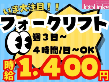 仕事内容 オープニングを迎えたばかりの新設倉庫で、 フォークリフトを使った入出庫作業や、 ピッキング業務をお任せします。 扱う商品はプラスチックトレイや日用品など、 重すぎないものが中心。 フォークリフト作業とピッキング作業を組み合わせ、 適度に体を動かしながら、 単調になりにくいメリハリある毎日を過ごせます。 作業エリアは明るく清潔で、 広々としているため開放的な環境で働けます。 勤務地は通勤に便利な門真市。 大阪市、守口市、大阪市中央区、大東市などからもアクセスしやすく、 京阪「門真市」駅や大阪メトロ「門真南」駅からの通勤が可能です。 また、車・バイク・自転車通勤もでき、交通費は全額支給。 通いやすさは抜群です。 フォークリフト免許をお持ちなら、 これまでの実務経験やブランクは問いません。 入社後は先輩スタッフが丁寧にサポートし、 安心して新しいスタートを切れる体制を整えています。 現場が初めての方や、 久しぶりに倉庫作業に挑戦する方も着実に成長できます。 20代~50代まで幅広い年代の男女スタッフが在籍し、 お互いを助け合いながら活躍している チームワークの良さが魅力です。 1日4時間から、 希望に合わせて働く日数や時間帯を柔軟に調整できます。 家事や育児、プライベートとの両立を重視される方、 副業やWワークで収入を増やしたい方など、 多様なライフスタイルに合わせた働き方を実現できます。 スマートフォンで手軽にシフト申請やタイムカード管理、 有給申請ができるため、忙しい方にも便利です。 また、週払い制度も利用でき、 急な出費にも対応しやすい環境です。 日曜日は必ずお休みで、 しっかりリフレッシュできる点も安心です。 新しい倉庫で、「みんな一緒にイチから」働ける環境のため、 人間関係もフラット。 プロ野球観戦ペアチケットなど、 楽しい抽選特典もご用意しています。 フォークリフト免許を活かし、 あなたらしい働き方を叶えたい方に最適な職場です。 新しい仲間と共に、これからの倉庫を一緒に作り上げてみませんか。 ご応募をお待ちしています。