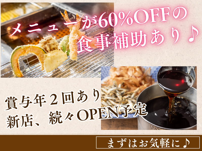 仕事内容 ・。.。・'・。.。・'・。.。・'・。.。・'・。.。・'・。.。・' 【オープニングスタッフ募集】 蕎麦と天ぷらを専門とする飲食店 よし蔵 川越鴨田店が3月中旬にOPEN! オープンに向けて正社員を募集! 新しい店舗で一緒に 成長していきましょう♪ 2月中旬から研修スタート! ・。.。・'・。.。・'・。.。・'・。.。・'・。.。・'・。.。・' ここがポイント!  ̄ ̄v ̄ ̄ ̄ ̄ ̄ ̄ ̄ ̄ ✅飲食店&週休2日制 プライベートも大切に♪ ✅未経験OK! あなたのチャレンジを応援します ✅新業態だから新しい事に チャレンジ出来る【面白さアリ】 ✅賞与年2回+決算賞与も♪ ✅メニューが60%OFFの食事補助あり◎ ✅いつかはお店を持ちたい方も応援 <独立支援制度アリ> ー【お仕事内容】ー <キッチン(調理)> …料理全般、仕込み *調理経験がなくても大丈夫♪ *研修で丁寧にイチから教えます ✅希望者はホール業務もお願いします <ホール(接客)> …オーダーのお伺い 料理やドリンクの配膳・片付け 笑顔でおもてなしの接客をお願いします □■□ こんなお店です □■□ 「十割蕎麦と揚げたて天ぷら よし蔵」は 蕎麦と天ぷらを専門とする飲食店** 2024年4月にオープンした新業態で、 「寿司と手打ちそばのお店 館乃」を 埼玉県で3店舗展開している 株式会社館乃が運営しています。 □■□ 料理のこだわり □■□ 【 蕎麦 】 十割蕎麦はつなぎを一切使わず 契約農家が育てた常陸秋そばや 北海道産の蕎麦粉を 石臼で挽いたものを使用しています。 風味、香り、透明感にこだわった 蕎麦が特徴です。 【 天ぷら 】 季節の野菜を使用し 鹿児島県南さつま市の 天然塩「坊津の華」で素材の 旨味を引き立てています。 また、希望すれば天つゆも提供されます。 ――――――――――――――・・…☆ 「ずっと飲食業界で働きたい!」 「新しい事にチャレンジしたい!」 「新店舗の立ち上げに関わりたい」 「いつかは店長になりたい」 など、やる気のある方と一緒に成長していきたいと思っています! / ご応募お待ちしております** \