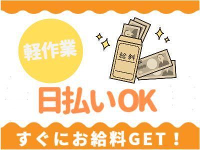 仕事内容 【主なお仕事内容】 ●パックジュースの検品・箱詰め作業 ・キャップにキズがついていないかをチェック! ・キャップから液漏れしていないかをチェック! シンプルでとてもかんたんな軽作業です! すぐに覚えられて、未経験の方も 皆さん大活躍しています☆彡 モクモク作業なので 自分のペースでお仕事をすることが出来ます! 【服装】 ●エプロン、アームフォーマーを付けてお仕事して頂きます! ※ネイル、ピアス、アクセサリー(腕時計など)NG