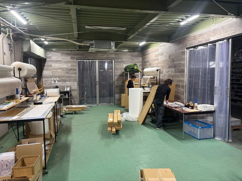 インテリア商品を扱う物流倉庫内での梱包、出荷作業