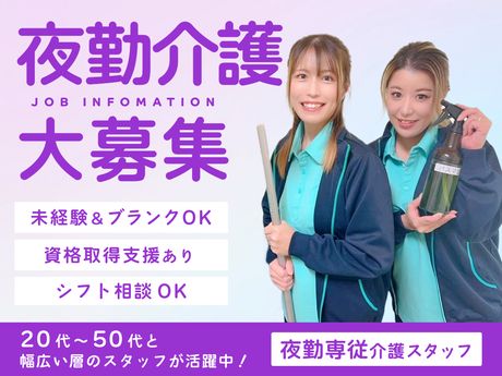 夜勤介護の経験があれば無資格OK◆少人数制の施設で安心・安全の「つながる介護」を提供!週1日~OK!