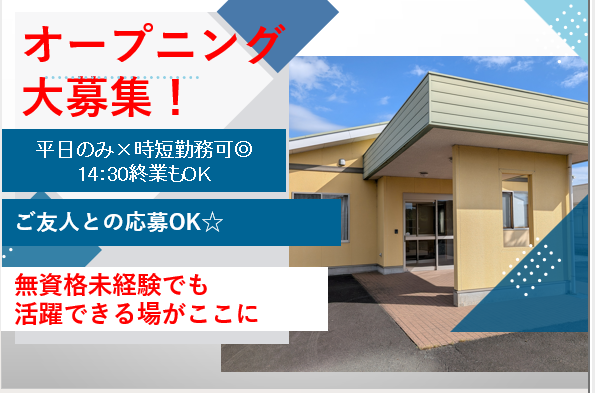 仕事内容 ╭━━━━━━━━━━━━━━╮ ㊗新規オープン決定!✨ みんな「はじめまして」だから 人間関係の心配はゼロ◎ オープニング1期生、大募集! ╰━━━v━━━━━━━━━━╯ ◤ ̄ ̄ ̄ ̄ ̄ ̄ ̄ ̄ ̄ ̄ ̄ ̄ ̄ ̄◥ \✨アピールポイント✨/ ✅ 待望の新規オープン施設! ✅ スタートラインは全員一緒 ✅ 上下関係・派閥は一切ナシ ✅ 1日5時間程度で15時まで等OK ✅ 平日のみ・週3日~OK! ◣______________◢ ⏩ 仕事内容 ・・・・・・・・・・・・・・・・・・・・・・・・* 新しくオープンする リハビリ特化型デイサービスで、 オープニングスタッフとして 利用者様のサポートをお願いします。 真っ白なキャンバスに、 みんなで色を塗っていくような ワクワクするお仕事です。 既存のルールに縛られず、 「もっとこうした方がいいかも?」 という意見も大歓迎です! ⏩ 具体的な業務 ・・・・・・・・・・・・・・・・・・・・・・・・* オープニングメンバーとして、 以下の業務をお任せします。 ・新しいマシンの使い方の説明 ・集団体操のサポート ・新しいレクリエーションの企画・実施 ・利用者様とのおしゃべり ・送迎の添乗(運転なしも相談可) 設備も備品もすべて新品! 気持ちの良い環境で、 新しい仲間と声を掛け合いながら 楽しく働けます。 ⏩ 求める人物像 ・・・・・・・・・・・・・・・・・・・・・・・・* 【資格・経験・学歴一切不問!】 「オープニング」という言葉に ワクワクする方なら大歓迎! ・新しい環境で心機一転したい方 ・人間関係がフラットな職場で働きたい方 ・イチから職場を作ってみたい方 ・同期の仲間と一緒に成長したい方 「出来上がった輪に入るのは苦手…」 という方にこそ、 オープニングは絶好のチャンスです! ⏩ やりがい ・・・・・・・・・・・・・・・・・・・・・・・・* 何もないところから、 みんなで施設を作り上げる達成感は オープニングスタッフだけの特権。 「この施設、私が立ち上げメンバーなんだ」 と将来胸を張って言えるような 素敵な施設を一緒に作りましょう! ⏩ 教育体制 ・・・・・・・・・・・・・・・・・・・・・・・・* オープン前に丁寧な研修があります! みんな同時に研修をスタートするので、 「私だけ知らない…」 「聞ける人がいない…」 なんてことは絶対にありません。 同期の仲間と一緒に、 マシンの使い方や接遇などを イチから学んでいけます。 ⏩ 勤務時間 ・・・・・・・・・・・・・・・・・・・・・・・・* 8:30~17:30 9:30~17:30 の間で1日5時間程度の勤務。 ※勤務時間・日数は相談に応じます ⏩ 勤務地 ・・・・・・・・・・・・・・・・・・・・・・・・* デイサービス元気倶楽部リブウェル 静岡県浜松市中央区半田町154-1 ※転勤はありません。 <アクセス> 遠州鉄道「積志駅」から車で5分 ※車・バイク通勤OK(無料駐車場あり) ⏩ 業界内での当社の立ち位置 ・・・・・・・・・・・・・・・・・・・・・・・・・・・・・・・*・・・ 浜松市でデイサービスや訪問介護など 総合的な在宅ケアを提供。 「“Do! We'll fare!”(さあ、元気にやっていこう!)」 を理念に掲げ、 特に「元気倶楽部リブウェル」は リハビリ特化型として地域で信頼を得ています。