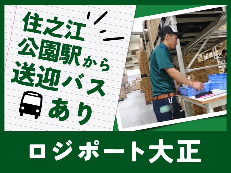 仕事内容 履歴書不要!応募から採用まで最短3日! 質問・働き方の相談だけでもOK! まずはお気軽に、ご応募お待ちしています! ✅7時~20時で週3日~、4時間~OK! ✅給与にプラスで寸志あり♪ ✅「大正駅」「住之江公園駅」から送迎バスあり! 大手コンビニ商品を取り扱う常温倉庫にて、 仕分けスタッフを募集します! ✨具体的な業務内容✨ ◇ケースの中の小物の仕分け ◇仕分けされてカートに乗っているものの搬送 ◇ハンディ検品など ケースをさっと仕分け ▼ 小物を仕分け ▼ カートを運ぶ…これでOK! 取り扱うのは、コンビニにある商品! 働いてて飽きない超・単純作業♪ ✨入社後の流れ✨ まずは、倉庫内の見学からスタート! 頼れる先輩が親身になって教えます。 見学後は、早速先輩と一緒に作業開始! 大手ならではの研修で、経験者も 未経験の方もすぐに慣れていただけます! - ✨倉庫内のこと✨ 倉庫内は常温で、休憩室も冷蔵庫や電子レンジ、ポットも完備。 広くてきれいなので休み時間はリラックスしながら過ごせます。 ☆売店、自販機有 ✨シフト自由で働きやすい!✨ ・週3日~、4時間~OK! (午前中のみも歓迎!) ・生活優先でシフトを組むことができるので お気軽に相談してください! ・Wワーク、大学の合間に働けるバイト先としても 働きやすいシフト調整も可能です。 ・大手物流企業なので、就職活動にも 活かせるところも便利です。