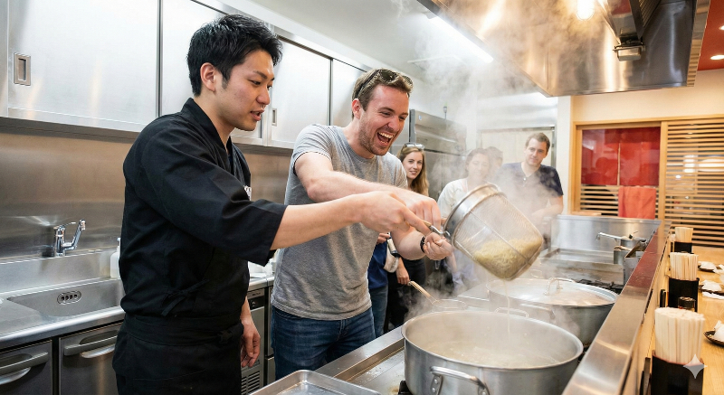 連日、世界中から予約が殺到する「ラーメン作り体験」。 ここは単なる観光スポットではありません。日本の食文化というエンターテインメントを世界に発信する最前線です。