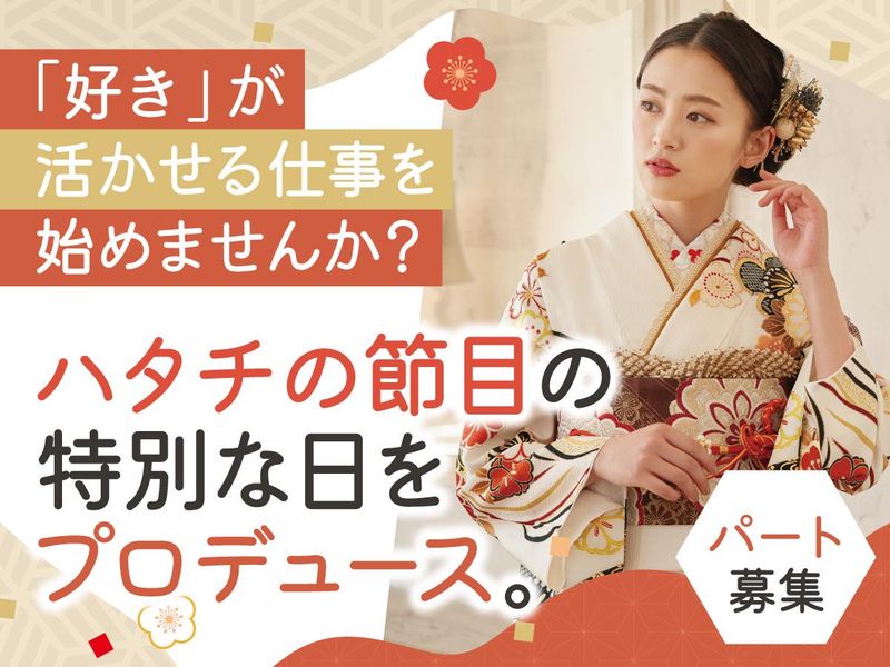 求めている人材 未経験・ブランク歓迎✨ ✅人と接するのが好きな方 ✅業界未経験OK! ✅要PC基本操作(文字・数字入力) ▼以下の経験をお持ちに方は優遇します ・振袖レンタル店 ・フォトスタジオでの振袖着付けや接客 ・ブライダル業界でのアテンド業務 ▼活かせる経験・スキル 販売職、飲食サービス、ホテルフロント、 営業職、美容師、エステティシャン、 ブライダルコーディネーター など ▼こんな方にぜひ! ・アパレルが好き、和装に興味がある ・習い事で茶道や日本舞踊などの 日本文化をたしなんだことがある ・丁寧な応対を心がける ・誰かが喜んでくれると自分も嬉しくなる ・ゆったり寄り添う接客がいい ・もう一度、レギュラーで活躍したい