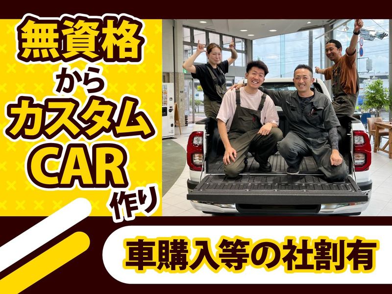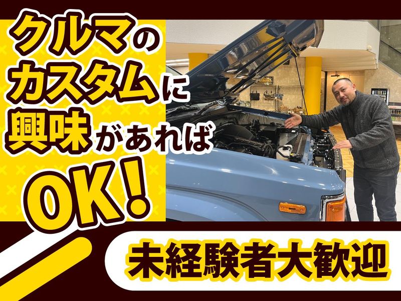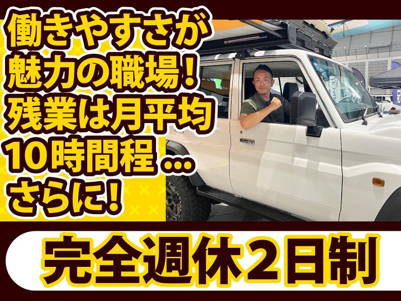 仕事内容 ランクル専門店・ハイエース専門店が併設されている店舗にて、パーツの取り付けなどを担当いただきます。 <具体的には> ・カスタム作業 (パーツ取り付け等) ・車両メンテナンス ・在庫管理 ・洗車 ー 自動車整備の資格は不要 ー 「車に興味がある」「車いじりをしてみたい」「カスタムのスキルや知識を身に付けたい」といった気持ちがあればOK! 自動車整備の技術や資格は必要ありませんので、未経験からスタートすることができます! 工具の使い方から丁寧に教えるので安心して始められます!工具が使える方はすぐに活躍できる環境です! ー アウトドア仕様のカスタムが人気 ー キャンプや登山、スノーボード、サーフィン、釣り等を趣味に持っているユーザーから人気のカスタムカーを販売しています! 悪路を走破できるランクル、車中泊ができるハイエースは、アウトドアを楽しみたいお客様にとって強い味方です! 趣味に生きる多くの人たちの「快適」「安全」「便利」などを叶えるアウトドア仕様のカスタムを手掛けることができます! ー 来店数が多く仕事が尽きない ー HPやSNSで発信を続けてきたことで、たくさんのファンを獲得することができています! そのため、当店に来店するお客様の動機が明確なので、車を購入してくれるお客様がとても多いのが特徴です! 売れるからこそ、カスタムする車両も増えていく!仕事が尽きないから、技術を磨けます! ー アクティブな人が多い職場 ー 20代・30代・40代の男性・女性スタッフが活躍しています! みんなアクティブなので、休みの日には趣味を思いっきり楽しむメンバーばかりです! 特に今は釣り好きなスタッフが多いので、休みを合わせて釣りに行くこともあるほど、スタッフ仲の良いお店です! ー 長く働いてほしいから残業少なめ ー 趣味を大切にしたい思いが強いメンバーが揃っているからこそ、ONとOFFのメリハリを大事にしています! 残業は月平均で10時間程しかないので、ワークライフバランスの取れた働き方ができます! ー 私たちはこんな会社 ー SUV、バンに特化したカスタムカー専門の販売店を各地に展開しています! アウトドアやイベント好きな社員が多く、希望があれば会社主催のイベントに参加することもできます! また、アウトドア、キャンプ、釣りメーカーさんとコラボをしているので、自分の好きなメーカーとのコラボに心躍る時があるかもしれません!