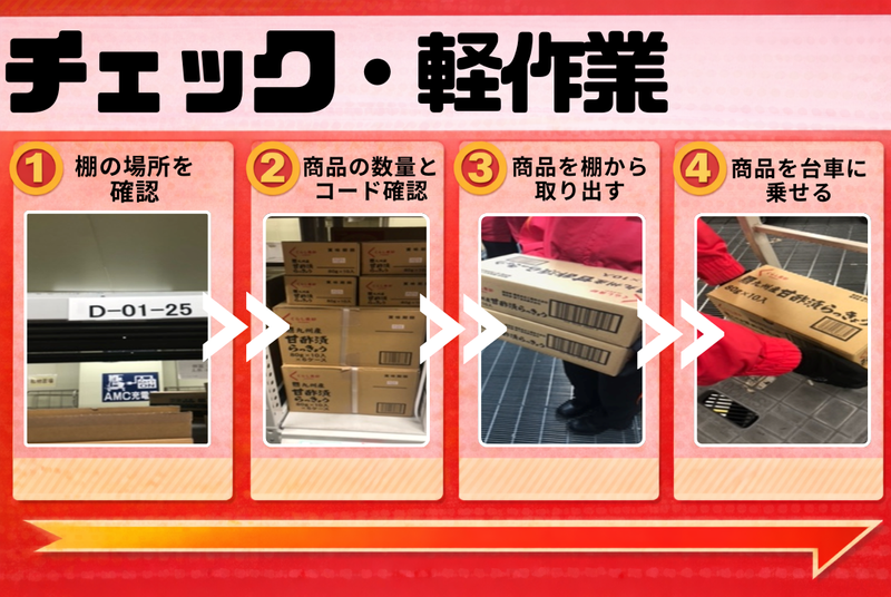 求めている人材 【歓迎条件】 ◎未経験者・ブランクある方大歓迎! ◎学生・主婦(夫)・フリーター歓迎 ◎20代・30代・40代活躍中 ▼活かせる経験 ┈┈┈┈┈┈┈┈┈┈ ・倉庫内軽作業スタッフ ・仕分け作業 ・ピッキング作業 ・検品・梱包作業 ・シール貼り・ラベル貼り ・入出荷作業 ・商品管理・在庫管理 ・物流センター作業 ・工場内軽作業 ・流れ作業・ライン作業 ・倉庫・物流業務全般 など! ※もちろん、必須ではありません!