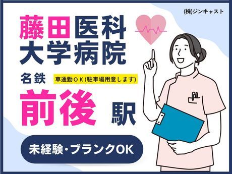 アクセス 名鉄名古屋本線 前後徒歩約38分、名古屋市営桜通線 徳重2番口徒歩約43分、名鉄名古屋本線 豊明出口1徒歩約53分 【☆藤田医科大学病院での勤務/ジンキャスト専用駐車場あり☆】※各駅から市バス通勤も可能です※