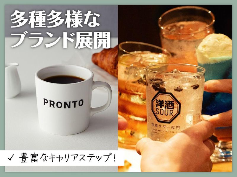 仕事内容 +…・…*…・…*…・…*…・…+ ⭐次世代キャリア採用!第二新卒歓迎! ⭐サントリーグループの安定基盤 ⭐福利厚生充実! 大手企業ならではの働きやすさ ⭐休暇制度充実!ライフワークバランス◎ ⭐ダイナミックホリデー制度で 長期休暇も取得可能 ⭐20代・30代若手中心に活躍中! ⭐店長経験がある方は月収30万円以上可 +…・…*…・…*…・…*…・…+ \こんな方にピッタリ!/ ・入社後にギャップがあり、 新卒で入った企業をすぐに辞めてしまった ・若手が活躍する職場で同世代と働きたい ・大手企業で安定して働きたい ・職場の仲間と和やかな雰囲気で働きたい! <具体的な仕事内容> 昼はカフェ、夜はサカバの2つの顔を持つお店での ・接客 ・調理 ・売上管理 ・スタッフ育成等の 店舗管理業務全般をお任せします。 <朝から昼はセルフサービスでのカフェ形式> こだわりのラテを1杯ずつ淹れたり、 ケーキやパスタ、パンなどを提供します。 <夜は大人なキッサカバ> サントリープレミアムモルツやハイボールなどの 種類豊富なドリンクや本格的な料理を提供します。 ✅とても和やかな雰囲気の職場です! お客様に心地よい時間を お届けすることを重視していると同時に、 働くスタッフにも心地よい時間を 過ごしてほしいと思っています。 研修制度やフォロー体制も整っているから 安心してオペレーションの習得を目指してください! まわりの先輩も同年代が多いので 和やかな雰囲気で質問もしやすいですよ! ================= プロントコーポレーションについて ================= PRONTOを中心に 300店舗を全国に展開する当社。 30年前のカフェ&バーブームの中で誕生し 時代の変化に合わせて新ブランドを続々展開。 安定した経営基盤のもと成長を続けています。 これからも妥協することなく お客さまのニーズと向き合い、 愛される店舗づくりを進めていくために 新たな仲間を募集します。 ================ 当社で働くメリット ================ ✅十人十色の店舗だからこそ身につく知識 当社は昼も夜も確実ににぎわう店舗展開を求め 来客数が見込める駅ビルや 空港などを中心に出店。 基本的なブランドコンセプトはおさえながらも 1店舗1店舗デザインも内装も 異なるお店づくりをしています。 お客様の層・エリア・時間帯に あわせたサービス内容により 個人店のようなお客様との 距離間を大切にしつつ チェーン店としての安定性も 兼ね備えた環境です。 さらに「Di PUNTO」「E PRONTO」 「和カフェ Tsumugi」など 複数のブランドを展開しているため、 1社にいながらも転職せずに 様々な業態・ジャンルに挑戦でき、 希望のキャリアを形成することができますよ! ✅大手企業ならではの充実した福利厚生 サントリーグループならではの 職場環境が揃っております。 ✨月8~10日休み。 福利厚生は20種類以上!! 「飲食業界はなかなか休みがとれなさそう…」という方も ダイナミックホリデー制度 (5連休を年2回取得)などを利用し ワークライフバランスも維持できますよ! ✨サントリー共済会 当社で働く社員・またはご家族が 安心して生活・仕事ができるような支援。 お子さんのお誕生日やご家族の介護費用、 ベビーシッター費用など ライフイベントに合わせた費用補助を行っています。 ✨サントリーグループ社販サイト サントリーグループの美容食品や 飲料(清涼飲料・酒類)が 特別価格で購入可能! その他サントリーホール主催の公演チケットが 割引でご購入いただけるなど グループの特典も多数! =============== 入社後の流れ =============== ■本社(東京都港区)で研修を実施して頂きます。 その後、店舗に立ち接客や調理を覚え 慣れてきたら、収支管理やアルバイトスタッフの教育、 シフト管理など店舗管理の業務をお任せします。 ■段階に応じて、バリスタ研修やワイナリー見学などの 特別研修があります。 少しずつスキルを身に付けられる環境です。 =============== 豊富なキャリアステップ =============== 年2回実施する試験後、店長へ昇格となります。 その後、売上・利益・経費の予算作成、 販促企画、人材管理・育成までマスターしていただきましたら、 入社3年(実力に応じて)を目安にSVとして ご活躍いただきたいと考えています。 <その他キャリアステップの例> ・アシスタントスーパーバイザー ・スーパーバイザー ・MGR ・部長 ・購買・商品開発 ・企画開発 ・物件開発 ・経営企画 ・営業本部長 ・その他管理部門(人事・総務など)