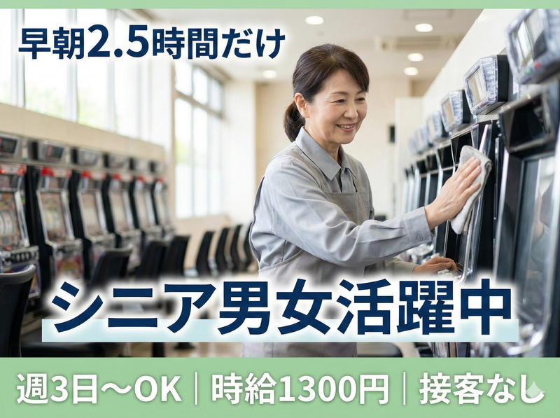 仕事内容 ⭐2店舗目の新規オープンに伴い増員募集⭐ \\ シニア男女活躍中 // 年金の足しに、運動不足解消に、 定年後の社会貢献に…… ちょこっとだけ働きませんか? ✅ 無理なく働ける 朝5:30~8:30の間で 2.5時間だけの短時間ワーク だから無理なく働ける! ✅ 接客&騒音なし 開店前の誰もいない パチンコ店の清掃なので、 接客も騒音も一切ありません! ✅ 家事感覚で働ける 拭き掃除や掃除機かけなど 日頃のお掃除でもやる作業ばかり! 適度に身体を動かしますが 過度な力仕事はありません。 ━━━━━━━━━━━ お仕事内容 ━━━V━━━━━━━━ この夏に開店した キレイなパチンコ店の 開店前清掃スタッフ募集です。 【作業内容】 *台やイスの拭き掃除 *床の掃除機やモップ掛け *ゴミ集め&ゴミ捨て など 難しい作業はなし! 決まった手順どおりに 進めるモクモク作業です! ━━━━━━━━━━ 当社について ━━━V━━━━━━ 2013年に設立。 神奈川県・東京都内にある郵便局の 日常清掃・定期清掃をはじめ、 幅広いビル管理業務を請け負う会社です。 おかげさまで常に安定した ご依頼をいただいています。 安定して働きたい方、 社会に貢献する仕事をしたい方、 ぜひご応募ください。 <公式HP> https://www.bmc2013.com/index.html 公式SNS 「@bmc_since2013」