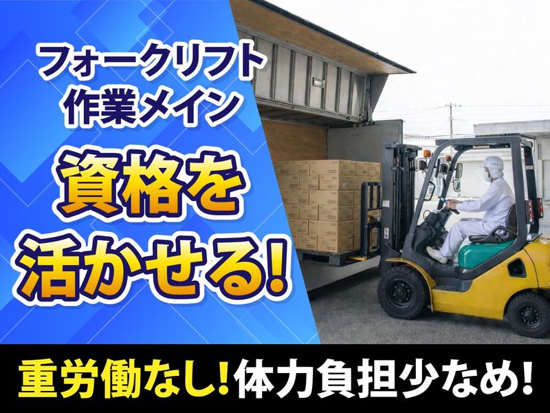 仕事内容 【おすすめポイント】 ✅フォークリフト経験を活かせる仕事 これまでの経験をそのまま活かして即戦力として活躍できます。 ✅月収27万円以上可能+ミニボーナス年2回 安定した勤務日数でしっかり稼げる環境です。 ✅年間休日122日・土日祝休み 家族との時間や自分の時間も確保できます。 ✅大手食品メーカーで安定勤務 景気に左右されにくい業界で、長期的に安定して働けます。 大手食品メーカー工場内の物流を支えるポジションとして、 資材の受け入れから搬入、倉庫内格納、出荷対応までを担当していただきます。 業務では全行程でフォークリフトを使用。 手作業は少なく、これまでの経験を活かしながら効率よく働ける環境です。 現場では決められた手順に沿って作業を進めるため、 一度流れを覚えればスムーズに対応可能。 慌ただしさよりも、正確さと安定した作業が求められる職場です。 ■仕事内容 ✅資材の受け入れ ✅製造現場への搬入 ✅製品の倉庫内格納 ✅出荷時の積み込み ✅パレット整理 作業手順や安全ルールは明確に決まっているため、 慌ただしく判断を求められる場面は多くありません。 これまでフォークリフト業務に携わってきた方であれば、 比較的早い段階で慣れていただけます。 ■スタッフの声(50代中盤) 「前職でもフォークリフトに乗っていましたが、 ここは手作業で重い物を持つことがほとんどなく、体への負担が少ないのが助かっています。 休みもしっかりあるので、無理なく働き続けられています。 まだまだ現役で働きたいという自分には合っている職場ですね。」