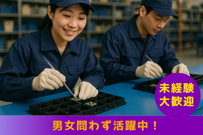 仕事内容 <無理なく続けやすい!> <土日祝休みで家庭との両立可能♪> <シンプル作業!チャレンジ応援★> <ブランクから久々の職場復帰ok◎> <残業手当あり/自転車での通勤可能> <お仕事内容> 電子部品を扱う工場で勤務! 「組立」「検査」などの作業です。 モクモクと作業に取り組める環境! <オススメPOINT> ・サポート体制ばっちり! 先輩のレクチャーあり◎ ・未経験から始めた方も在籍♪ 経験があれば活かせますよ! (求人のポイント) <私生活との両立が叶う◎> 平日のみ!17時台定時! 「フルタイムで安定した収入ゲット」 「プライベートと両立したい」 など希望を考慮♪