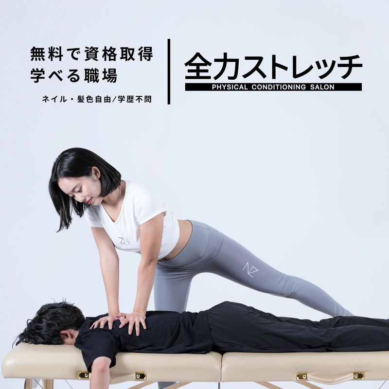 仕事内容 仕事内容 パーソナルストレッチトレーナー・セラピスト 全力ストレッチでは、お客様一人ひとりのお身体に合わせた“パーソナルストレッチ”を提供しています。ただ身体を伸ばすだけではなく、 姿勢改善 肩こり 腰痛 疲労改善 可動域改善 ボディメイク リラクゼーション など、お客様のお悩みに寄り添いながら施術を行います。 具体的なお仕事内容 ■ ストレッチ施術 お客様のお身体をマンツーマンでサポート。全身ストレッチを中心に、 肩甲骨 骨盤 股関節 首肩 腰回り などを施術します。 ■ カウンセリング お身体のお悩み 姿勢 疲労状態 睡眠 運動習慣 などをヒアリングし、お客様に合った施術をご提案します。 ■ セラピスト業務 リラクゼーション提供 癒し空間づくり 接客 指名対応 など。エステティシャンやリラクゼーション経験者は、接客スキルを活かせます。 未経験でも安心!充実した無料研修制度あり。未経験の方でも、 ストレッチ技術 接客 カウンセリング 解剖学基礎 指名獲得方法 まで、基礎から丁寧に研修します。 こんな方が活躍中 ✔ エステティシャン ✔ セラピスト ✔ リラクゼーションスタッフ ✔ 美容部員 ✔ 整体・マッサージ経験者 ✔ スポーツ経験者 ✔ 美容好きな方 全力ストレッチが目指すもの “癒し” と “身体改善” の両立。 お客様に、 身体が軽くなった 姿勢が変わった 疲れにくくなった また来たい と思っていただける、感動体験を提供しています。 【SNSはコチラ】 もっと知りたい!と思ったら… 職場の雰囲気やスタッフの紹介などの詳細は動画をチェック! 実際に働くイメージが膨らみますよ★ ◆YouTube:@zenryokuproduce