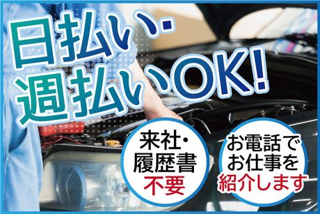 仕事内容 ■車検や自動車整備のフロント事務 自動車の車検や点検などの受付や 車検・修理依頼に関する事務作業をお願いします。 【 お仕事内容 】 ・電話対応 ・データ入力 ・書類の仕分け、整理 ・修理受付 ・作業見積書作成 ・車検が近づいている既存のお客様への車検コール ■フロント経験を活かせる!20代・30代の男性活躍中 接客のお仕事経験があれば、 それらの経験を活かして働けます◎ お客様からのご依頼受付は、 車のメンテナンスについてがほとんどですが、 車や修理などに関する知識は必要ないので安心♪ 普通自動車免許を持っていれば十分です! ■フルタイム×高時給でしっかり稼げます! 日勤のみなので生活リズムも安定◎ 入社してから3日間は 特別時給2000円なのも嬉しいポイント! 通常時給も時給1400円以上なので安心♪ 経験がある方は、高時給1500円スタートです! ■来社&履歴書不要!電話でお仕事のご紹介が可能です 応募後、まずはこちらから電話でご連絡いたします。 その際にご都合が良い日時をお伝えいただければ その日時に改めて電話で連絡いたします。 家事の合間や仕事が休みの日など、 あなたの都合のよいタイミングをお伝え下さい。 お電話で業務内容の説明やあなたの希望をおうかがいしたうえで 希望のお仕事をご案内いたします。