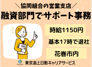 \融資部門でサポート事務/ ◆金融機関ご経験者、歓迎デス♪ ◆ほぼ17時定時で退社! ◆マイカー通勤OK@花巻駅から車で20分