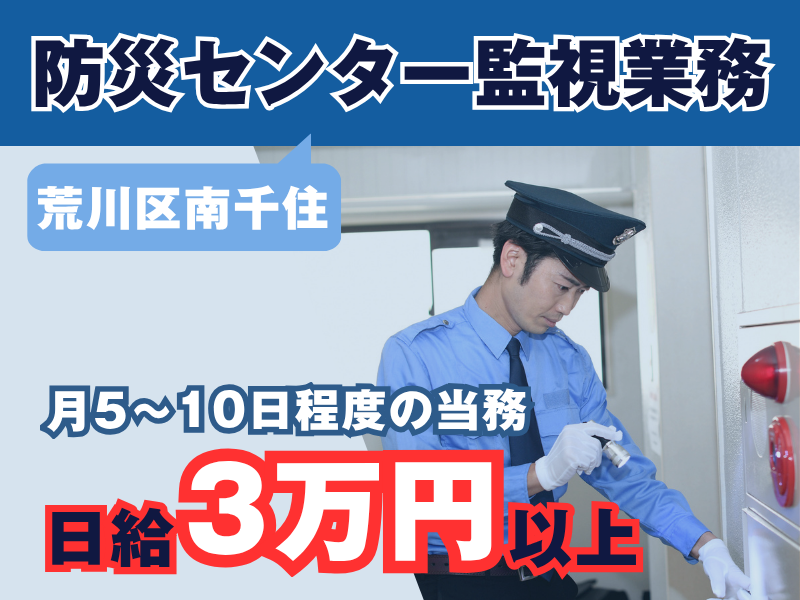 アピールポイント: ・日給3万円の高日給 ・月5~10回程度の勤務で無理なく働ける ・防災センター要員、自衛消防技術認定を活かせる ・交通費全額支給 ・タワーマンション防災センター内での勤務 ・現場研修ありで安心スタート