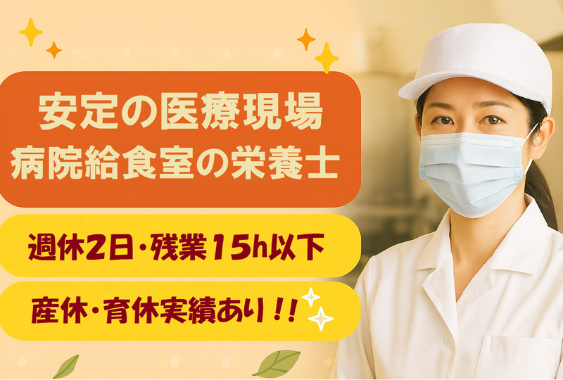 仕事内容 ⭐ 資格があれば実務未経験OK! ⭐ 経験者の転職も大歓迎!病院未経験歓迎 == 安定した医療現場のお仕事です == 創立60周年の安定企業が運営する給食室 【 賞与2回/交通費支給/給食付 】 ✦✦✦ 正社員の「栄養士」2名募集 ✦✦✦ ⏩ 応募は簡単!スマホで約1分 ⏩ 電話応募もOK▶028-638-5655 ⏩ 面接のみ/筆記・実技試験なし 【仕事内容】 調理・衛生管理・食材管理など、チームで協力しながら進めるお仕事です。 献立作成や病院での経験が無くてもOK!丁寧にお教えしますので、イチから経験を積みたい方ご応募ください! 病院内の給食室で、栄養士としての第一歩を踏み出しませんか? ✅ ボーナスは年2回⽀給︕ ✅ 残業ほぼ無し!月平均15h ✅ 週休2日制+有給休暇 ✅ 交通費は月12,000円まで⽀給︕ ✅ 美味しいまかない付き♪ ――――――――――――――――― ✨実務経験者は給与優遇します✨ ――――――――――――――――― 経験年数などで、開始月給から優遇! アルバイト・パート経験者も優遇します 1年目から月給25万円スタートも可能。 入社後にも昇給あります。 『収入アップしたい』 『正当に評価してくれる会社で働きたい』 『経験を積んでも給与が伸び悩んでいる』 そんな方、ぜひご応募ください。 更に残業は少なめで月15h程度ですが、残業した場合は手当全額支給など働いた分がしっかり収入に反映されます! ――――――――――――――――― ✨イートランド株式会社について✨ ――――――――――――――――― 全国の病院調理室・学校給食室・社員食堂を中心に、飲食店の運営など「食」に携わる事業を多岐に展開しています。 栃木県宇都宮市で創業60年以上︕ 総スタッフ数は約3000人! ⻑く勤務いただける職場環境に⾃信あり◎ 現場巡回などで本社スタッフが丁寧にサポートします。 ⏩ スタッフ同士の相談だけで休み取得可 ⏩ 制服・マスクなどすべて会社⽀給 ⏩ 産休・育休実績あり!復帰もサポート ⏩ 65歳まで雇用延長可!退職金あり ⏩ 衛⽣上の体調不良で⾃宅待機をお願いした場合、給与6割保証。子育てママも活躍中 ✋正社員ではなくてパートで働きたい栄養士さんもご応募ください(時給1300円~1600円、時間・日数相談OK!)