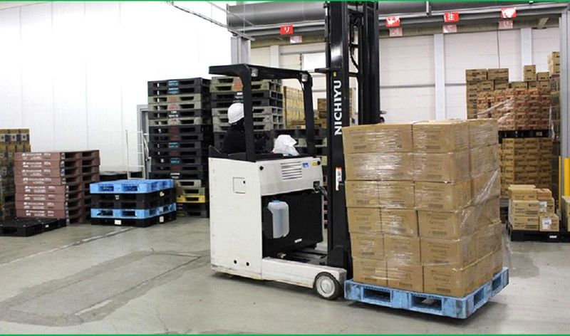 スーパーの倉庫での日用品や食品の入出荷作業・リフト_g018