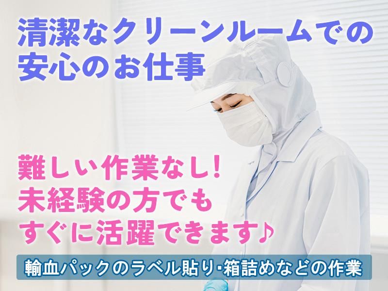 仕事内容 <☆日本赤十字社での安定のお仕事☆> 「ほぼ会話ナシ」のコツコツワーク◎ ✅資格・知識・経験、一切いりません ✅人付き合いが苦手でもOK ✅清潔&静かな環境でコツコツ作業 ✅社会に貢献できるやりがいあるお仕事 ✅残業ほぼなし&時給1400円の安定収入 *・・■仕事内容■・・*・・*・・* 勤務先は、日本赤十字社の血液センター。 献血で集められた血液を、 病院などで使える製品に加工するお手伝いをします。 ~主な作業内容~ ・製品のチェック(重さや見た目の確認) ・ラベル貼り ・梱包・出荷準備 ・製品加工(専用の機械を使った簡単な処理) ・簡単なPC入力 など ★作業はマニュアル通りで安心。 ★難しい判断や重い荷物運びはありません。 *・。*・。*・。*・。*・。*・* <☆コツコツもくもく作業☆> どれも一人で黙々と進める作業が中心です。 人と話すことが少ないので、 「接客や電話対応が苦手」という方にも 続けやすい環境です◎ <☆未経験スタートでも安心☆> 丁寧なマニュアルがあるのはもちろん、 実際に働く前に職場見学もできます。 「どんな雰囲気かな?」 「本当に私にできるかな?」 そんな方は、ぜひ見学で不安な気持ちを 解消してくださいね! <☆清潔・快適・安心の環境☆> 勤務先は“クリーンルーム”と呼ばれる清潔な環境。 冷暖房完備で、いつも快適◎ 制服(作業着)を着て作業するので、 服が汚れる心配もありません。 もともと工場・製造経験のある方も多く、 「人間関係がラク」「落ち着いて働ける」 と好評です☆ ▧ ▦ ▤ ここがポイント!▧ ▦ ▤ ⭐コツコツ進めるルーティンワーク ⭐残業ほぼナシでプライベートも充実 ⭐駅チカで通勤もラクラク♪
