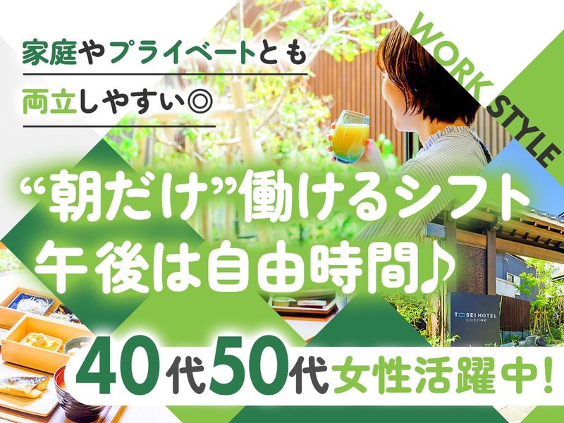 仕事内容 \落ち着いたホテル空間で、朝の時間を有効活用♪/ 未経験から始められるリネンスタッフ募集! 上場企業グループが運営する「トーセイホテル ココネ鎌倉」でのお仕事。 和モダンで上品なホテルにて、 ご宿泊のお客様を“朝のおもてなし”でサポートしていただきます! ★ホテル未経験OK!丁寧指導で安心◎ ★週1日~OK!主婦(夫)も大歓迎 ★平日のみ or 土日祝のみの勤務OK ★交通費支給(規定有)でムダな出費なし ★昇給あり♪頑張りを評価します! - ■お仕事内容 - ▼メイン ・タオル・シーツ類の運搬、棚への納品作業 など ▼サブ ・朝食の準備(簡単な調理・料理や食材の補充) ・配膳や片付け(ホールでの簡単な接客) ・洗い場(食器やグラスの洗浄) 朝食数/平日:30食、土日:80~90食 \未経験でも安心!/ 簡単な業務からスタートできるので、 飲食やホテル業界が初めての方でも大丈夫です◎ - ■このお仕事の魅力POINT! - ①“朝だけ”働けるシフト!午後はまるっと自由時間! 買い物・通院・趣味など、自分の時間をしっかり確保♪ 家庭やプライベートとも両立しやすい、ちょうどいい働き方です◎ ② チームで動くから成長もやりがいも! 個人のお客様だけでなく、団体対応もあるのでチームワークが大事! スタッフ同士で連携しながら動くことで、接客スキルや気配り力が自然と身につきます。 終わったあとの達成感もひと味ちがいます♪ ③ “トーセイブランド”の安心感 上場企業グループが運営する安定のホテル。 和モダンな内装で落ち着いた雰囲気の中、丁寧なおもてなしを学べます。 アクセスの良い立地で、通勤しやすいのも魅力です◎ あなたの一歩を、私たちがしっかりサポートします ご応募、心よりお待ちしております!