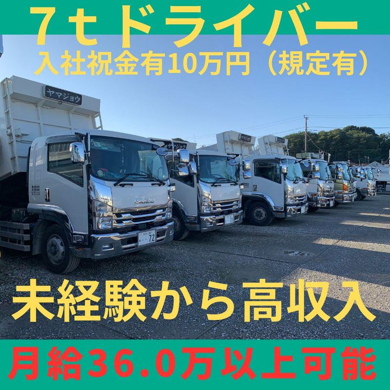 仕事内容 【入社祝金有(10万円)6か月後支給】 ■7t免許でしっかり稼げる!■ 「毎月の収入に波がある生活に、もう疲れた」 そんな想いで転職を決めたAさん。 以前は月によって出勤日数や給与がバラバラで、先の見えない不安を抱えていたといいます。 「ここに来てからは業務量が安定していて、毎月しっかり稼げる。賞与などの待遇も手厚くて安心できた」と語ってくれました。 ――“収入の安定”を求めている方にこそ、ぜひ知ってほしい。ヤマジョウならそれが叶います。 ――――――― ■お任せするお仕事は?■ 自社の拠点や専門処理場へ残土や骨材などを運んでいただきます。 ■お任せするお仕事は?■ 自社の拠点や専門処理場へ残土や骨材などを運んでいただきます。 ◆配送先:23区、千葉・埼玉、神奈川(一都三県)の建設現場や解体工事現場 ◆配送件数:1日3~4現場、ダンプ車で回ります。 ◆車両:新型車両 ◆保有台数…3t:4台、7t:9台、10t:11台、大型トレーラー:3台 ――――――― ■長く働ける職場■ ▶従業員50名中、8割が勤続10年以上! ▶家族や知人の紹介で入社した人も多数在籍! ▶家族を養えるくらい、しっかり稼げる会社です。 ――――――― ■スタッフインタビュー■ ―― 40代ドライバー:Aさん ―― 前職では出勤日数や給与が月毎に異なり、不安定な生活をしていました。 「安定して働きたい」そう思っているときに見つけたのがこの会社です。 入社時、【毎月安定した給与】【豊富な業務量】にほっとしたのを覚えています。 その他にも賞与など、嬉しい待遇も充実していて、安心して働けています。 ―― 20代土工:Bさん ―― とても働きやすい職場です。 結婚10周年の時には、1週間の休みをもらって沖縄旅行に行ってきました。 夜勤や長時間労働などもないため、19時にはほとんどの社員が帰宅しています。 家族との時間を過ごせるようになった先輩も多いです! ―――――――― ■現在活躍中のスタッフ構成■ ◎在籍10年目(22歳で入社)→未経験スタート ◎在籍19年目(19歳で入社)→未経験スタート ◎在籍15年目(28歳で入社)→経験者 計10名が在籍。定着率が高く、8割が勤続10年以上です。 ★一人親方(重機の免許を持っている方)、専属の職人(重機免許を持っていない方)が4名在籍。 ――――――― ■年間を通して安定して稼げます■ ◎建設現場での残土や廃棄物の運搬 ◎重機による掘削や解体工事一式 など、多岐にわたり業務を請け負っています。 ご信頼いただいている取引先から、年間を通して依頼あり! 仕事量も常に安定しているため、たとえば、雨天で現場がストップしているときでも、別の作業ができる現場を振り分けることができます。 ■当社のモットー■ 「働く人みんなに稼いでもらいたい」というのが当社流。 経験者から未経験者まで活躍できる体制を整えています。 経験者▶即戦力として業務をお任せ! 経験が浅い人・異業種からの転職者▶安定して稼げるよう、資格取得を支援! ――――――― ■家族や友人にオススメできる職場■ 家族や友人を紹介する社員が多い当社。 いい会社だと思ってくれている社員が多いからか、重機オペ担当の奥さんがドライバーとして入社したり、また別の社員の息子さんが土工として入社し、活躍していたり。 在職中の社員からの紹介で入社した方も多数活躍しています。 ウチは責任感を持って担当の仕事をしてくれればOK。 本人の裁量に任されています。 勤続年数が10年以上の人が多いのは、こんな働きやすさにあるのかもしれません。