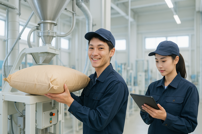 タイトル 【千葉県船橋市】肥糧の製造補助作業、その他付随作業/時給1750円/日勤/土日休み/残業なし_keiyo1465 職種 製造・軽作業 肥糧の製造補助作業、その他付随作業/時給1750円/日勤/土日休み/残業なし 雇用形態 派遣社員 仕事内容 肥糧の製造補助作業、その他付随作業 ・肥糧の製造にあたり袋詰めされた原料を床下の投入口から流し込む。(約20kg) ・機械内で配合されダクトから肥料が落ちてくるので袋をはめて充填する。 ・充填された袋にラベルをローラーの上で貼りつけていく。 ・肥糧の袋をパレットに5個×10段に積み上げていく(約10パレット)(1袋20kg) ・積み上げたパレットにラップを巻き付けていく。 ・手空き時の工場内清掃、残材の片付けなど。 このお仕事の特典!! ・週仮払い可 ・有給休暇有 ・社会保険完備 ※会社の定める就業場所(派遣先)および業務へ配置相談の可能性あり