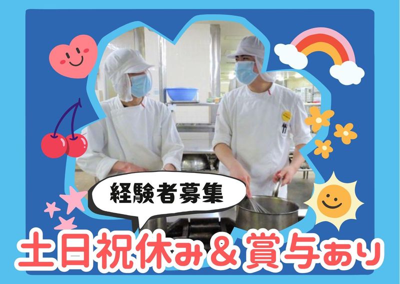 求めている人材 【必須条件】 下記すべてを満たす方 ● 調理師免許所持年数3年以上 ● 集団給食(学校・病院・施設等)の調理経験2年以上 ● 責任者経験がある方 【こういった方からの応募も歓迎!】 ・ブランクがある方もOK! ・主婦(夫)さん、フリーターさん歓迎! 【こんな方にピッタリ!】 ・土日祝休みで、家庭や自分の時間を大切にしたい方 ・人を笑顔にすること、喜ばせることが好きな方 ・チームで協力しながら、目標を達成することにやりがいを感じる方 ・安定した環境で、腰を据えて長く働きたい方