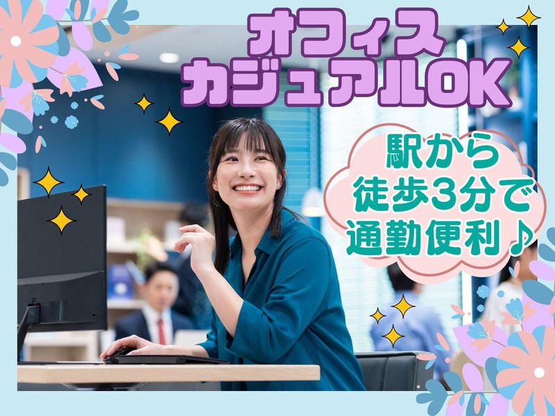 職場環境 ✨女性スタッフ活躍中の職場✨ *駅チカで通勤便利な明るい雰囲気のオフィス★ *オフィスカジュアルOK! 落ち着いた雰囲気のなかで、自分のペースで仕事ができる環境です◎