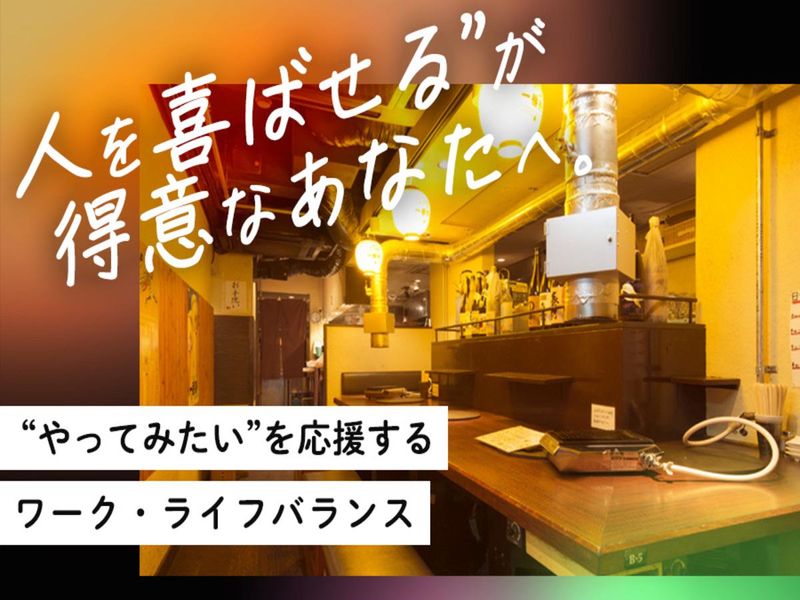 求めている人材 【必須条件】 ・明るく元気に働ける方! 【応募資格】 ・接客業務で必要なため、日本語でお客様と円滑にコミュニケーションができる方 ・日本語能力試験N1レベル相当の日本語スキルをお持ちの方 / 履歴書不要! 未経験者さんもみ~んな大歓迎! \ 人柄重視で採用中! プライベート優先シフトでOKです! 副業・WワークもOK! 学生さんが中心となって お店をガンガン回してくれています♪ サークルみたいな団結力と楽しさ! 学生仲間が欲しい人はご応募ください(*'▽') ★未経験者大歓迎 ★学生・フリーター活躍中 ★扶養内勤務OK ※22時以降18歳以上の方に限ります ▼△▼△▼△▼△▼△▼△▼△▼△▼△ 下記内容もひとつでも当てはまったら当店にピッタリ☆ こんな方もお待ちしてます!! ……………………………………………………… ○接客が大好き!! ○料理のレパートリーを増やしたい!! ○接客経験はないけど人と接するのが好き!! ○料理のスキルを身に付けたい!! ○シフトの融通が利くお店で働きたい!! ○プライベートを大事にしたい!! ○学業と両立しながら働きたい!! ○レギュラー勤務でしっかり稼ぎたい!! ○正直言ってまかない目当て!! ○活気がある元気なお店で働きたい!! ○同世代の仲間が欲しい!!