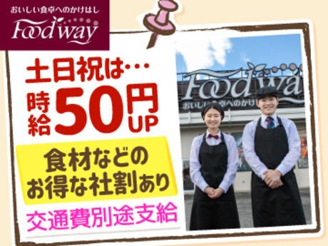 職場環境 【従業員構成】 20代・30代・40代・50代・60代活躍中! ▼フードウェイの魅力POINTをご紹介します♪ (1)時給が高めで稼ぎやすい! (2)シフトの融通がきく♪ (3)日数・曜日で時給がUPする! (4)社割で家計が大助かり♪ (5)研修が丁寧で未経験でも安心◎ 【職場の雰囲気】 協調性がある 立ち仕事 アットホーム お客様との対話は多い 長く働ける 自分の都合に合わせやすい 知識、経験不要