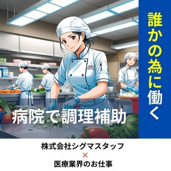 仕事内容 < アピールポイント > ◆WEBで簡単登録OK ◆未経験歓迎のお仕事 ◆残業ほぼなし ◆高時給スタート ◆人柄重視の職場! ◆主夫・主婦歓迎 ◆コロナ対策も万全! ◆年齢不問! ◆即日勤務OK <未経験でも歓迎!> 病院や福祉施設の厨房で 働くことが初めての方でも ひとつひとつ丁寧に教えます◎ 分からないことは先輩スタッフに スグに聞ける環境なので安心♪ ★調理補助経験のある方は優遇 <週3日~OK&残業ほぼなし> 残業ほぼなしなのでプライベートと メリハリつけて働けます◎ 家事と両立して働く主婦パートさんも 活躍しています! <交通費全額支給> 車通勤もOK!駐車場代は無料です♪ 最寄り駅から無料の送迎バスもあります。 現在勤務している方は船橋市・鎌ヶ谷市・ 白井市・八千代市など様々な所から通勤されています◎ ――――――【お仕事詳細】―――――― 設備や施設が整っている大病院内にて、 調理補助をお任せ! 【具体的には】 ・盛り付け ・配膳、下膳 ・洗浄 など <スタッフインタビュー> 「医療業界はもちろん未経験でしたが、 周りの皆さんが丁寧に 指示&サポートをしてくださり、 不安なく始めることができました♪ 興味がある方は是非チャレンジしてみてください。」 (30代女性スタッフ)