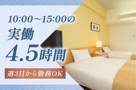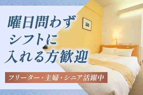 資格 ◆客室清掃経験2年以上または 客室清掃チェッカー経験1年以上必須 ◆日本語での業務指示や確認を正確に理解できる方 (高度な会話・読み書きが可能な方) ◆高卒以上 ※清楚な範囲で、髪型・ピアス自由ですが、 長い爪やデコレーションネイルは 業務に差し支えるのでご遠慮ください。 近隣の主婦(主夫)さん、 フリーターさん、シニア世代など 幅広い世代のスタッフが活躍中!