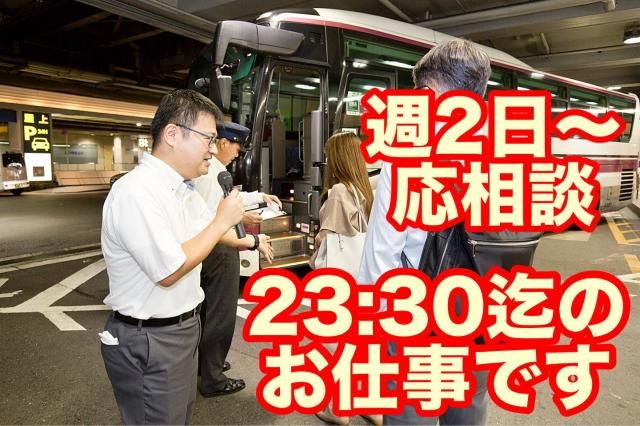 アルバイト【夜行バス案内業務】経験や知識は一切不問!週2日~OK!残業ナシ!幅広い世代が活躍中!