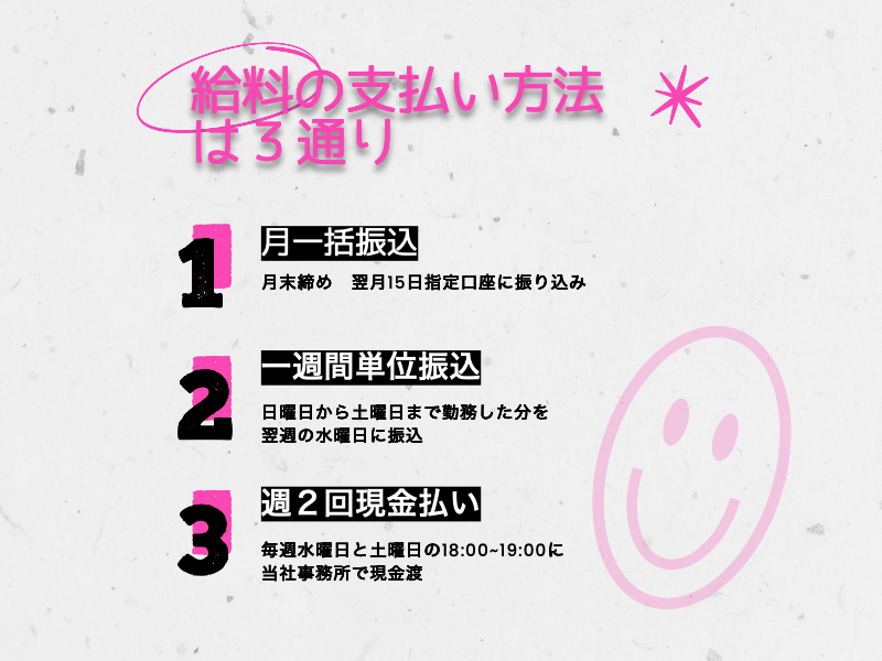選考プロセス ここまでお読みいただき ありがとうございます。 まずはお気軽にご応募ください。 ※応募後に届くメールに記載されたURLから情報登録をお願いします。 <選考プロセス> WEB登録 ▼ ヒアリング ▼ 就業開始 ※WEB登録&ヒアリングのみなので、 来社不要・採用面接もなし!
