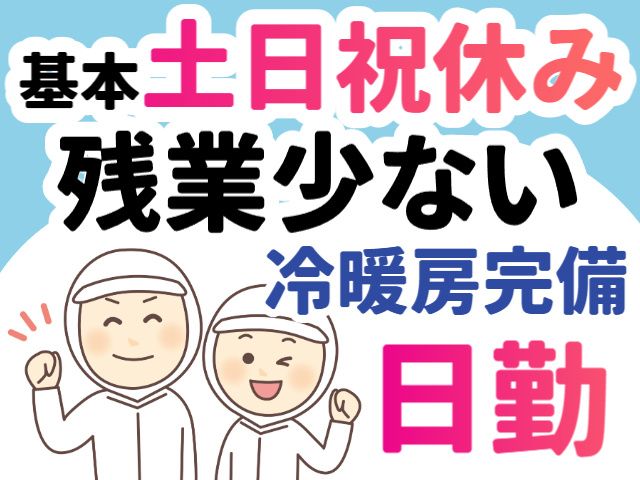 勤務時間 8:00~17:00(実働8h/休憩1h) ※午前と午後に15分間の休憩があります。 ※基本残業なし(残業希望者は相談OK) ‐‐‐‐‐‐‐‐‐‐‐‐‐‐‐‐‐‐‐‐‐‐‐ <1日の流れ> ※一例です 出社 ↓ 朝礼(月曜日のみ) ↓ 午前の作業開始 ↓ 12:00~お昼休憩(45分間) ↓ 午後の作業開始 ↓ 16:00~清掃・機械の清掃 ↓ 退社 ‐‐‐‐‐‐‐‐‐‐‐‐‐‐‐‐‐‐‐‐‐‐‐