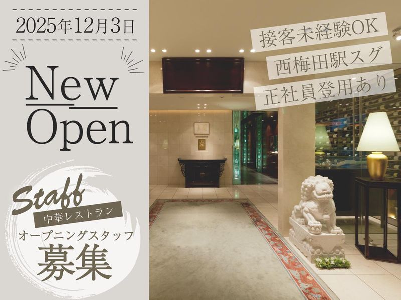 仕事内容 \\アピールポイント// ✅12月新規オープンの高級中華レストラン ✅西梅田駅徒歩2分&大阪駅徒歩5分の好立地 ✅時給1400円スタート、経験者は1600円も可 ✅1日4h~OK!ランチorディナーだけも歓迎 ✅社員登用制度ありで長期勤務も安心 【仕事内容】 ヒルトンプラザイースト7階にオープンする 中華レストランにて、接客全般をお任せします。 丁寧なマナーを身につけながら、 落ち着いた空間での接客ができる職場です。 【具体的には・・・】 ・料理を運ぶランナー業務 ・テーブルのセッティング ・ドリンク作成・提供 ・注文取り(オーダーテイク) ・お客様のご案内・接客対応 など ■12月オープンの新しいお店です  ̄ ̄ ̄ ̄ ̄ ̄ ̄ ̄ ̄ ̄ ̄ ̄ ̄ ̄ ̄ ̄ ̄ ̄ ̄ ヒルトンプラザイースト内に 新しくオープンする高級中華レストランです。 格式ある雰囲気の店内で、 丁寧な接客を学びたい方にピッタリ。 オープニング募集のため、 全員一緒のスタートで安心! マニュアルも丁寧に用意するので、 飲食未経験の方でもご安心ください。 一緒にお店づくりから関わっていただける方を 歓迎しています。 ■柔軟シフトで働きやすい  ̄ ̄ ̄ ̄ ̄ ̄ ̄ ̄ ̄ ̄ ̄ ̄ ̄ ̄ ̄ ̄ ̄ ̄ ̄ シフト例は、 ・10:00~14:00(ランチのみ) ・17:00~22:00(ディナーのみ) ・12:00~22:00(しっかりフル)など ライフスタイルに合わせて相談OK! 1日4h~勤務OKなので、 学校や家庭、Wワークとの両立も◎ 「午前だけ働きたい」 「夕方から入りたい」なども柔軟に対応します。 ■時給1400円スタート/経験者は優遇あり  ̄ ̄ ̄ ̄ ̄ ̄ ̄ ̄ ̄ ̄ ̄ ̄ ̄ ̄ ̄ ̄ ̄ ̄ ̄ 時給は1400円スタート! 飲食店でのホール経験がある方は、 1600円スタートも可能です。 交通費支給や制服貸与で 働く環境も整っています。 長く働きたい方には社員登用制度もあります。