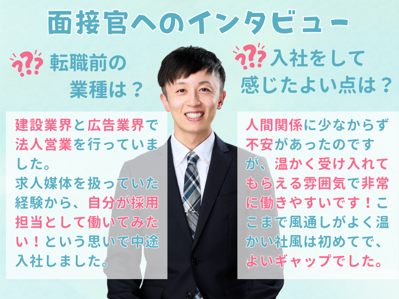 選考プロセス 【選考方法】 ※履歴書は面接時にご持参ください。 ※応募書類は当社で厳重に処分いたします。 1、エントリー 2、応募後、2営業日以内にご連絡 3、面接は2回を予定 4、面接から内定まで2週間程度を予定。 ※応募後、2営業日以内にご連絡 ※ハローワークでも募集中 ※電話応募も歓迎