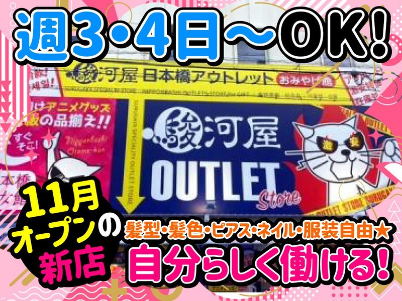仕事内容 \近隣4店舗▶リニューアルオープンにつき大募集!!/ 大阪のアニメグッズの聖地『日本橋』。 そんな日本橋で店舗を構える駿河屋の アニメグッズ専門店で働きませんか♪ / ◆あなたらしく働ける!◆ 『好き』を活かして働ける×自分に合った働き方ができる =最高の職場です☆彡 \ *週3.4日~・1日4時間~OK! ▶Wワーク・副業・扶養内勤務可能 *髪型・髪色・ピアス・ネイルOK! *駅チカで通勤便利♪学校帰りにも◎ ============= <お任せするお仕事は...!> アニメグッズ、ゲーム、プラモデル、 フィギュア、ぬいぐるみ、同人誌などの 買取業務・接客・販売、 商品加工、商品陳列。 リニューアルにつき買取強化予定★ また、簡単なモクモク軽作業もお任せ! 「やること多くて難しい…?」 ⇒いいえそんなことはありません!! 初めは…★ 「昨日買い取った商品を袋詰め」 「大まかな商品の配置を覚える」など… 徐々に慣れていきましょう! 先輩スタッフがしっかり指導するので、 未経験でも安心してスタート◎ 「めっちゃ稼ぎたい!」「スキマ時間で入りたい!」 「授業終わりに入りたい!」「本業終わりに!」 ⇒働き方の相談OK!留学生も大歓迎です! 経験やスキルは一切不問! 初めてのアルバイトという方も歓迎! ※駿河屋乙女館他日本橋エリアに系列店複数あり! 扱っているジャンルが違うので、 「この店舗で働きたい!」希望もOK!